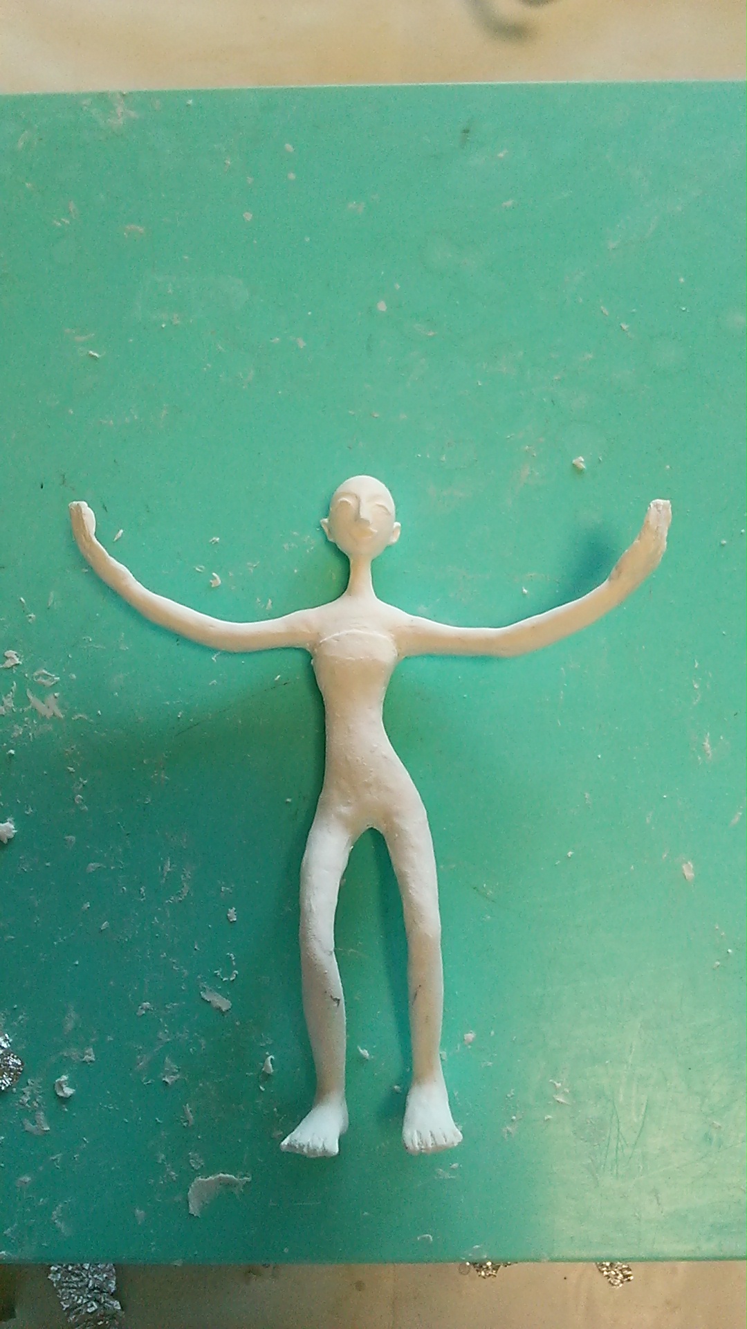 けれど、粘土付けてるうちに違う形が見えてきて、またしても手足を曲げたりして修正かけてしまった。