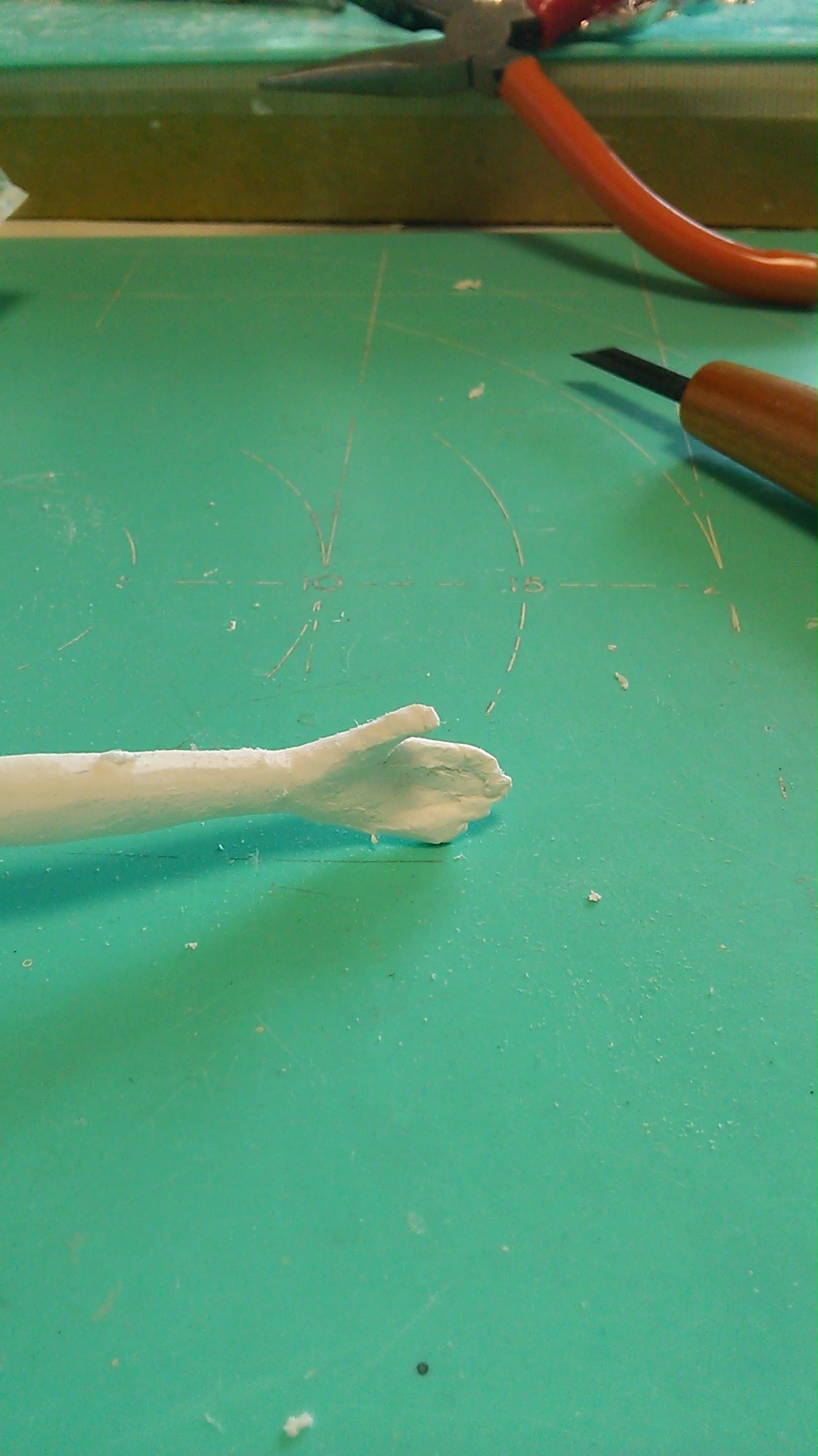 粘土の食い付きが良くなるように、腕と足をヤスリがけ。