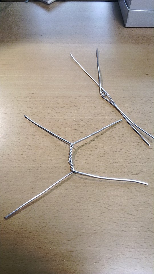 12センチにした割り箸で針金(径2ミリ)を計って切る。