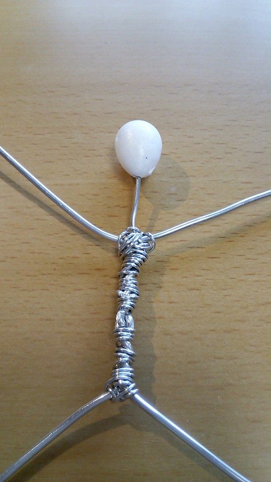 首の芯になる針金(径1.5ミリ)を巻き付ける。