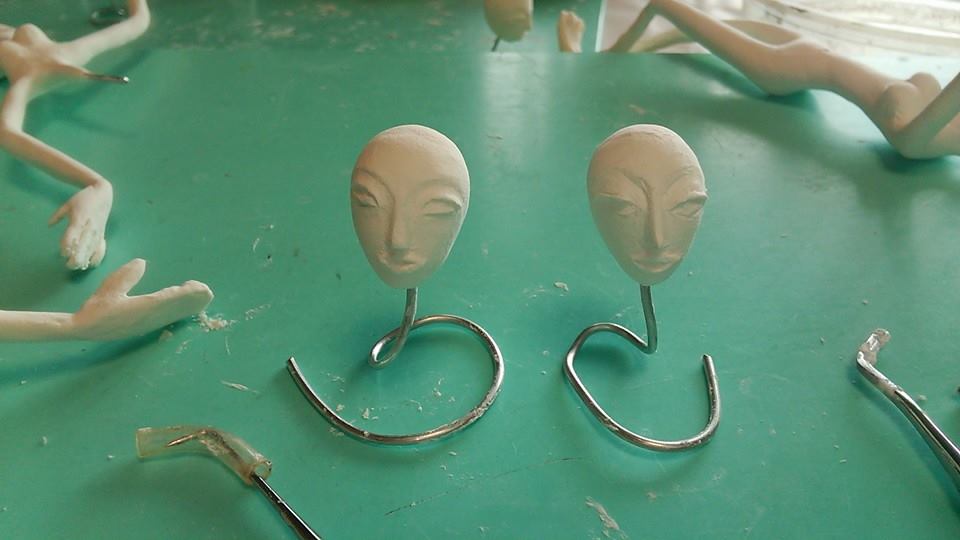 この芯を抜いて、粘土を盛ったり削ったりして頭を体とは別に作ります。前は全部一体じゃないと作れなかったけど、この辺は進化した(笑)。