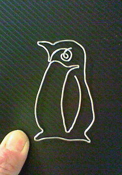 ペンギンパスティーシュ画家のkayoさんもお越し。この間「バー感謝」のイベントの時に、グラスマーカーをお買い上げだったのですが、それの応用で針金ペンギンできない?と言われてて。