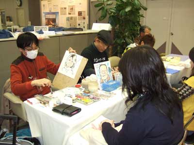 笑像画展期間中唯一土曜の昨日は、席描きもあって大賑わいでした。私もあちこちDM配ったりしたし、なるべくつめてようと思いつつ、前日の突然の熱急上昇急降下の余波で、ちょっとばかり喉が痛く、結局お昼ごろからアサコムに。