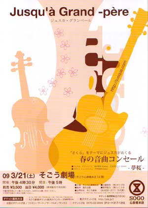 と言いつつ自分のじゃなく(笑)、次の日のジュスカ・グランペールのライブお知らせと、桜つながりで4/5(日)高津宮の桜まつりイベントのお知らせ。