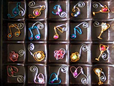 ワイヤーで作った、「グラスマーカー」です。雑貨屋さんでも時々見かけますが、パーティなど大勢の人がいる時に、自分のグラスに目印としてつけておくものです。