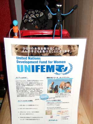 今回、「ユニフェム」という発展途上国の女性支援のための基金に売り上げの一部を募金するという、チャリティの趣旨にしたがって、バレンタインデーの楽しい思い出になるような小物を制作、販売させてもらいました。