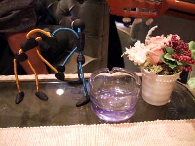 昼の時間にはペンギンパスティーシュ絵画のかよさん、夜には先日シングルスでお会いしたけいこさん、それにパンチさんもお越しでした。グラスマーカーはなかなか好評でたくさん売れたので、募金もできて良かったです。