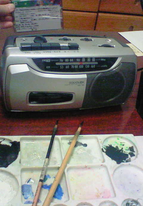 いつもの筆ペンもしっかり首からさげてると思ったら、お芝居でも使ってました。顔を描くのが得意な人です(笑)。