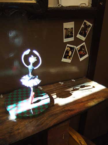 このバレリーナ、なかなか一人で立てないんですよー。トゥシューズでつま先立ちだし。(昨日の日記では立ってますが)