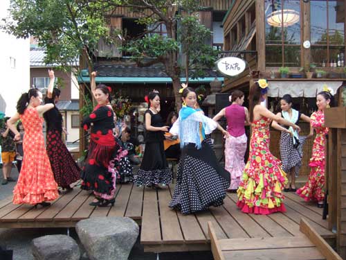 ところで、毎年高津宮の参道で、100人によるセビジャーナス(フラメンコの踊りのひとつ)を踊るというイベント。
