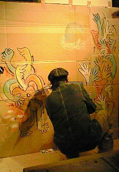 ライブ終了後は、カッターナイフ片手にぞろっと並んだ人が、絵を次々切り分けて持って帰る。うわー私にはできんわ、と思いつつ、それぞれのピースを手に満面の笑みの人々を見ると、こういうのいいなーとハッピーな気分になりました。かおりさんにも久しぶりに会えたし、楽しかったです♪