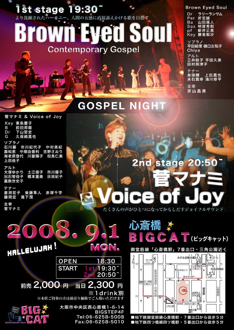 9/1(月)、ゴスペルナイト@ BIGCAT、無事終了いたしました~。(写真はメンバーとよちゃんのお友達撮影。ありがとうございます。)