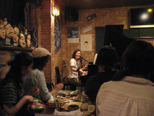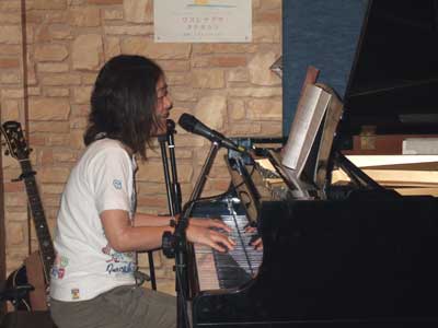イーハではたまきさんや恭さんやねじまきのすけさんら、知り合いばかりだったので、「すいません、今晩弾き語りするんで一度弾かせてください」と、逆リクエスト。違うピアノで、いきなり人前でご披露、しかもピアノの上の作品をどけてという、傍若無人な行為つき。割と緊張感あふれる体験を自ら好んでやったのでした。