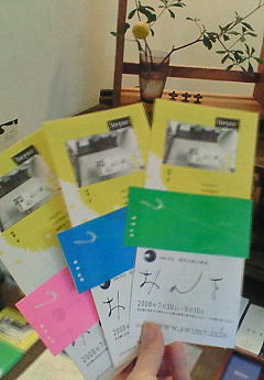 おんさ展参加ギャラリー巡りをしてます。ピンクの帯はmillibar、青は交流会があったSEWING GALLERY、そして緑が今日訪れた京都のギャラリー、mizuca。