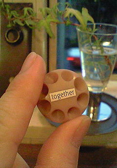 いろんなボタンに言葉が貼ってあって、好きなのを一つ持って帰れる、という形の作品がありました。(chalk さんの「ことばボタン」)