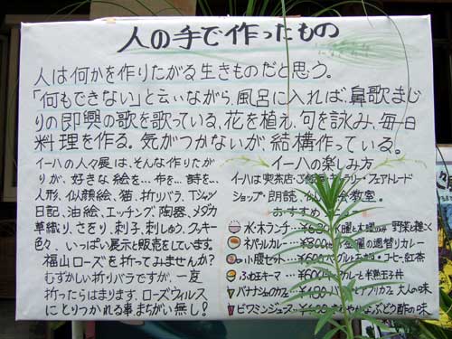 写真1枚目、イーハオーナーの新田さんによるあいさつ状です。「人は何かをつくりたがる生きものだと思う」。
