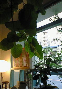 お店の中に伸びる緑の葉がいい感じ。先日の交流会やその後のライブで会った作家さんの作品、他にもいろいろ面白かったです。