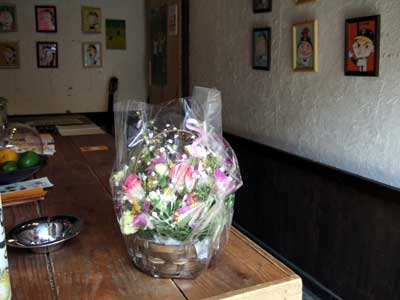 初日に夫の似顔絵友達から送っていただいたお花。ありがとうございます。