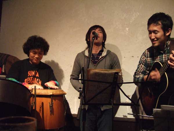 Mita Takeは、関東で活動してるギターと歌&ハモニカのデュオ。これが大阪初ライブだそうです。大阪の人はあらゆるところで笑をとろうとしてるように感じられるらしい(笑)。