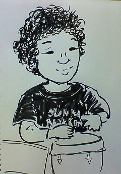 しかし、慣れてくるとみんながんがん描いてました。うさぎを描いたのにてんとう虫にしちゃったり、いろんな物に手足付けたり顔を描いたり。思いもよらなかった絵になっていくのが面白い。画材も筆ペンあり色鉛筆ありマーカーあり♪こういう即興お絵描き、また展開していくそうで、ドキドキわくわくです♪
