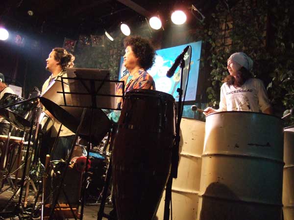 こんなに近くで演奏するのは緊張するだろなー。見るほうもだけど。コンガで参加してる誠一さん。スチールパンでもちょっとソロがあったりして、レア~な体験できました。