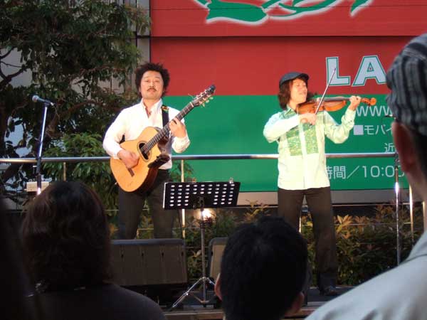 以前ここで無料ライブがあったとき、雨で二階のベランダでやってたなー。遠くて小さくて、でも音楽は伝わってきて感動した。今日はお天気だから、このステージが使えて良かったね~。お客さんもいっぱい!