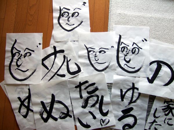 へのへのもへじがまた、楽しかった。これ、絵ですもんねー。つい笑顔の雰囲気とか丸顔とか細面とかいろいろ描きたくなったりして。