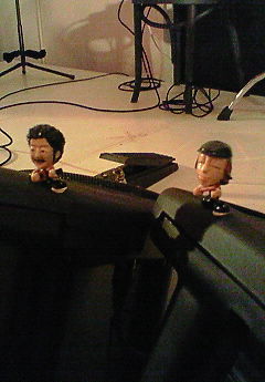 手前にコンガが写ってます。ライト代わりのスタンドが思いっきりmotsubeanジャイ庵さんの顔にかぶってる~。