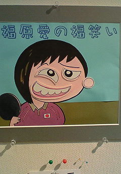 写真は夫の作品。だじゃれ~(笑)。人気投票は絵の下にピンを刺してもらうんですが、昨日1日中ピンを集計してた夫は、木に赤い実がなってるのさえピンに見えるそーです。押しピンノイローゼ。かわいそ(^o^; 妹一家に両親も遊びに来てくれて、姪がうむをも言わさず夫の絵に投票させてました。幼稚園児に借りができたねぇ~(笑)。