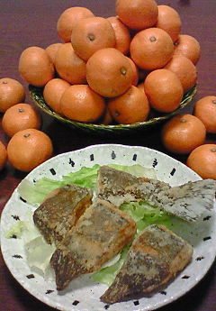 お正月にも食べてたおいしいみかんもいっぱい~。わーい(^O^)。カビさせないよーにせっせと食べなきゃ~(笑)。