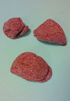 布の服も簡単ではないけど、」出来上がりがさすが本物の布、リアル感がありますね。手足の先が大きいので着せ替えするのはちょっと無理だけど。帽子も、布で立体を作るんだと思えば、型紙にこだわらずに直接仮縫いとアイロンでなんとか形作ったりして、苦労はしたけど結構楽しかったです。ハマるかも~。せっかくジェニーちゃんのお洋服の本もあるしね(笑)。