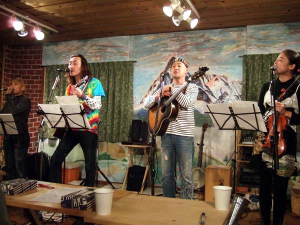 その代わり、楽器が結構ややこしい。洗濯板にはシンバルやらカウベルやら。しかしそういうのはマコさんの楽器で修行済み。軽い軽い。