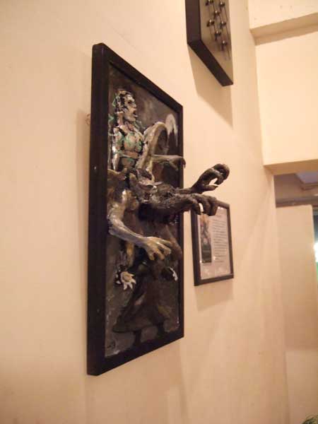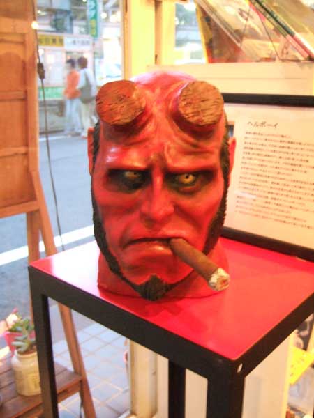 いえいえ、ナカジさんはそんなコワイ方ではありません(笑)。これは映画「ヘルボーイ」の登場人物だそうです。カフェの入り口にこんなんですよー、迫力ありすぎ(^_^;)。大きさもほぼ実物大で、これから体を作っていったら、将来的には160センチくらいになるそうな。こわそ~~~。