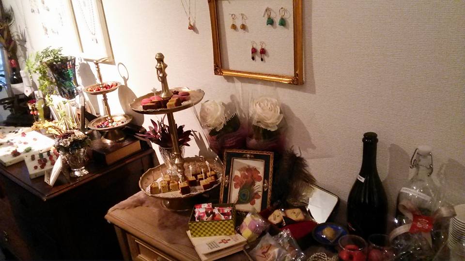 キャビネットやウィンドウに書かれた文字、沢山の花や色とりどりのスイーツ、壁にかかった絵、お祝いの気持ちがアトリエ一杯に溢れていて、私までパワーもらえる気分でした。
