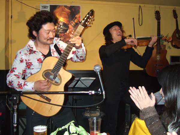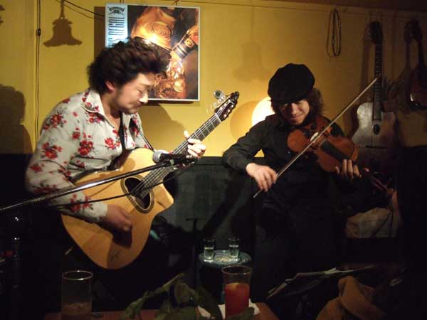 「Poco Poco」の、リズムがゆっくりから早くなっていったりまた止まったり、の感じがとても好き。「フラミンゴ・ジ・アルーシャ」でも確か一度やってたけど、room335でやる時の方が盛り上がる。ヨーロッパの片田舎の居酒屋にでもいるみたい。行ったことないけど。しかしバイオリン弾くひろせさんって、なんて楽しげで幸せそうなんだろ。