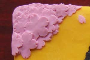 それから、桜の花をひとつひとつ、積み重ねていきました。このおもちゃっぽい感じ、層になった立体感(てホントに立体だし)、かわいくてポップな雰囲気がぴったりじゃない~♪