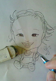サダさんの「嬉しい似顔絵教室」に行きました。先日描いた姪の似顔絵とか、友達にあげた絵のコピーとか、10秒で描いた線画とか、作りかけのディジュリドゥまで持って。