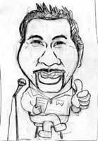 サダさんの「似顔絵教室」は、前半は絵を描くときのポイントとか、画材や紙の性質とかを、サダさんが実演しながらお話されますが、後半は参加者それぞれの作品披露。初心者だろーが時間がなくて途中だろーが容赦なく(^_^;)さらしものです。
