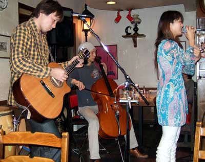 ライブは二部構成、もちろんチェロもありました。やっぱエレクトリックよりこっちの方がいいなー。って思ってたらエレクトリックのも持って来てました。なんか、音がそっちの方がいいこともあるとかで、用意周到、準備万端なマコさん。荷物多くなるわけだ。