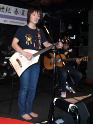 5番手月夜さん。「ヤイリギターというメーカーの9弦ギターをいつも使っている」というのをいちお、前知識として仕入れてた(HPで読んだだけ)けど、この日は「一五一会」というギター(?)でした。面白い形だなー。しかも弦が4本なんだって。一気に数が2分の1以下。演奏しにくくないのだろうか。素朴なギモン。じわっと始まって高らかに終わる、気持ちい~いステージでした。