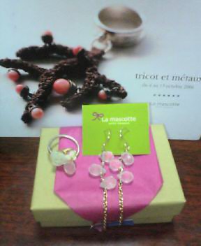 アクセサリー作家のかわせようこさん(La mascotte)の個展開催中♪行かなきゃ~。天然石、ニットに金属、カメオにシェル等異素材を組み合わせたアクセサリーはどれも素敵♪長居してしまいました。13日まで。中央区大手通1-1-1 MANIFEST GALLERY