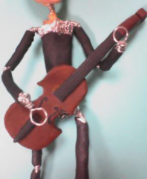 以前作ったフィモのチェロ、ポーズ確認に使ってます。アイスのスプーンよりずっといい♪