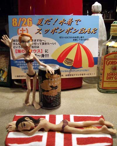 先日から作っていた女の子、もう一人のかくれキャラ(笑)とともにBar South or Northに派遣しました。今晩8/26は、お客さんもどうぞ水着でお越しくださいというイベントやってるのです。