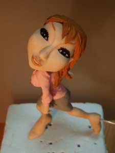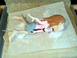 顔にかかる髪の毛は、色付きの粘土だからあまりぐちゃぐちゃやってると顔が汚れてしまうので、なるべく手早くぱぱっと。肩や背中の辺りはもう少しはねた感じを出したいな。