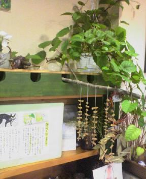 イーハの中はすっかり夏のしつらえ。サダさん作のカエルのイラストがそえてある。