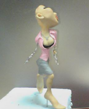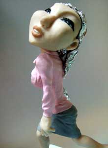 手を先に作ってから、腕の部分にピンクの粘土を盛りました。左肩のところも少し盛り上げて、ポーズを修正してます。