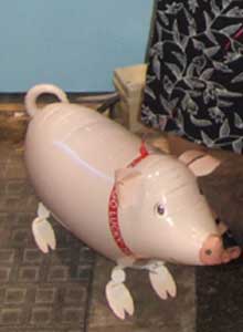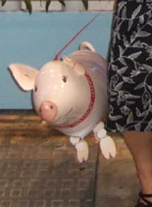 風船に足が付いてて、ちょうど歩くくらいの高さに浮かんでるこのおもちゃ、縁日とかで見たことあったけど、買ったのは初めて。同じ種類ので、ダックスフントやティラノサウルスなんかもありました。