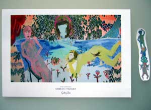 以前「Surface transcription」という展示を見に行った時(6/24日記「アートとデザイン」)に小橋さんが在廊していて、ご自分の作品の話なども伺いました。写真はそのときにもらったDMと、個展で配っていたシール。いろんな作品を小さく切って「ご自由にどうぞ」と箱の中に置いていました。