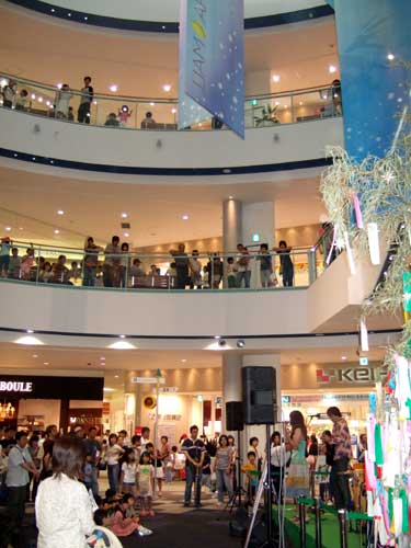吹き抜けのアトリウムに色とりどりの七夕の短冊を付けた笹があった。私も書いておけば良かった。夢をかなえたい、そんな気持ちを応援してくれる歌が多いヒポポタミの音楽を聞かせたら、短冊も力を増すに違いない。(モーツァルトで酵母が活性化、の応用)