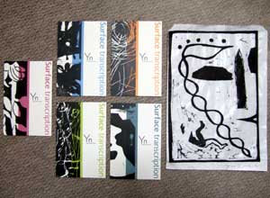 目を引くのは、大判のポスター。版画を元にスタイリッシュにデザインされている。作家の西尻幸嗣氏の原画をデザイナーの河村岳志氏がアレンジしたもので、「Yn」というブランドを立ち上げた、そのお披露目だと書いてある。白を基調にしたオシャレなカフェなんかに飾ったら似合いそう。